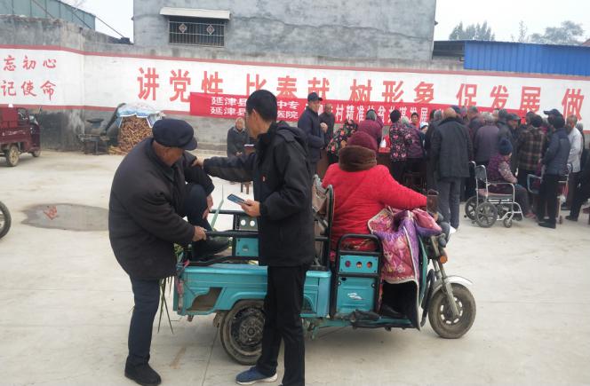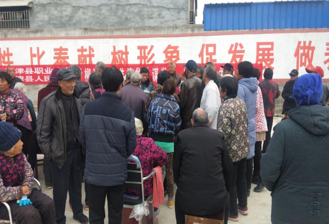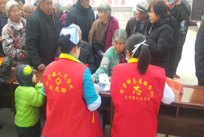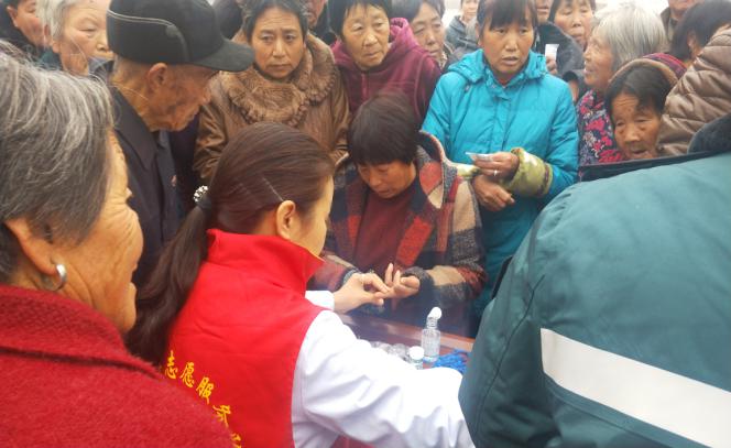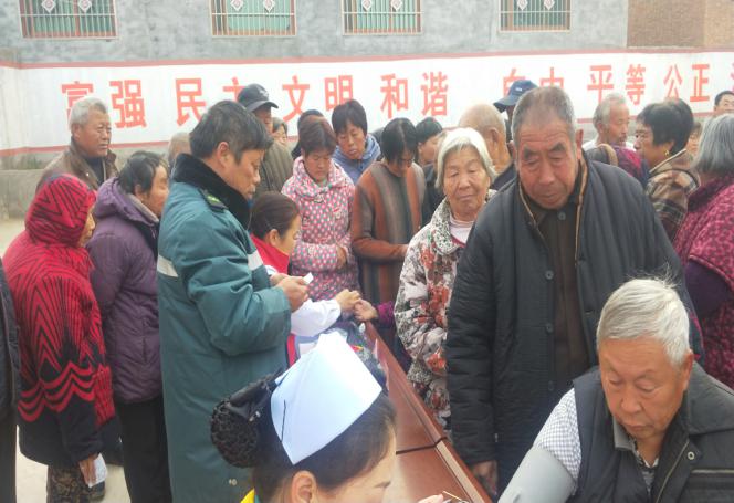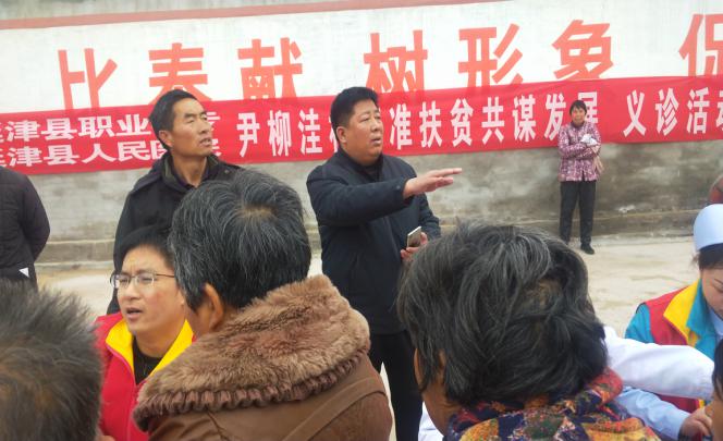 在县职业中专党支部书记、校长谢本林的协调下,在县职业中专驻司寨乡尹柳洼村工作队的精心组织下,县职业中专和县医院联合在尹柳洼村举行大型义诊。虽然天很冷,而且起了大雾,但是不到8:00,村卫生室大院三个一群,五个一伙,站满了前来问诊就医的群众;虽然雾大车慢,中间因为道路施工又绕了路,但不到8:30,县医院“巡回医疗”志愿者服务队在医疗发展部主任母佰东的带领下,彩超室、心电图室、化验室、内科、外科、耳鼻喉科、眼科、皮肤科、中医针灸科、药品咨询室、医疗发展部等有关科室17人再次来到尹柳洼村送医下乡。