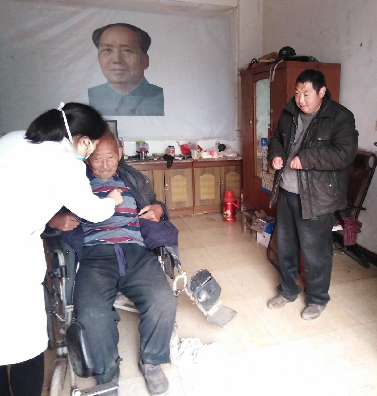 一切为了群众,为了一切群众,为了群众一切。当得知个别群众因为身体原因无法到现场检查时,工作队和县医院的专家一起入户问诊,他们来到贫困户王贺奇家中,对瘫痪在床的王贺奇的妻子程喜花做了全面检查,又对王贺奇做了常规检查,工作队和县医院专家鼓励他们在和病魔作斗争的同时,要在政府和社会各界的指导帮助下,解放思想,克服困难,自力更生,尽快走上致富路。